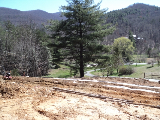 Clover seed was sown between the rows, but a heavy thunderstorm Sunday night may have washed most of it away. Time will tell.
