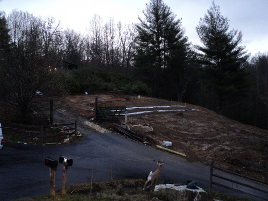 Signs of Spring have finally arrived to the N GA mountains. Saturday was a beautiful day to be out working. The sun was shining bright with temps in the mid 60’s. I was forced to change the locations of the rows after discovering areas of hard pan. Hard pan is soil compacted to a very rock-like hardness that water will not penetrate and roots cannot breach. My hope is that since the vines are 6 ft apart, careful planning will allow the vines to straddle the narrow ribbons of hard pan. Grape roots go very deep, but not so wide. Any hard pan I encounter when planting will be aggressively attacked to create areas for roots.
