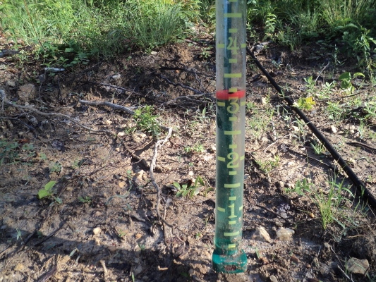 I did a little work in the vineyard. I finished the Chambourcin trellis by adding two wires. I attempted two repairs on the drip tape, but the barbed connectors I used only slowed the leaks a little bit. I will probably end up replacing the whole strip since both leaks are in the same run.