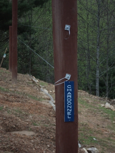 On Saturday I ran trellis wire on the Mid Wire Cordon and Top Wire Cordon trellises. My Geneva Double Curtain trellis for the Norton will have to be re-engineered since the cross arms bent when the 300 pounds of pressure required was too much for them to handle.