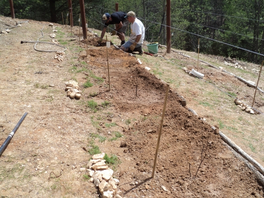 Our son Matt came up Sunday to help with the labor, and we had a good day and got all 24 vines planted.