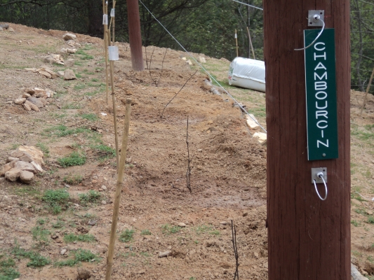 Our son Matt came up Sunday to help with the labor, and we had a good day and got all 24 vines planted.