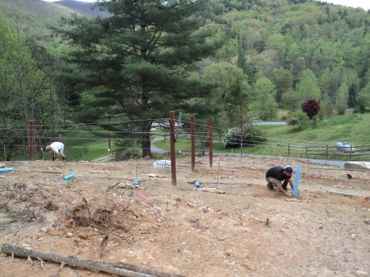 Our son Matt came up Sunday to help with the labor, and we had a good day and got all 24 vines planted.