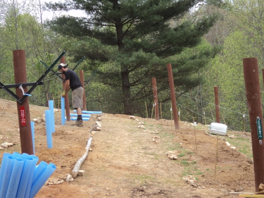 Our son Matt came up Sunday to help with the labor, and we had a good day and got all 24 vines planted.