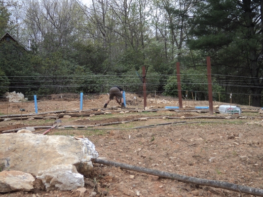 Our son Matt came up Sunday to help with the labor, and we had a good day and got all 24 vines planted.