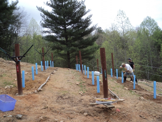 Our son Matt came up Sunday to help with the labor, and we had a good day and got all 24 vines planted.