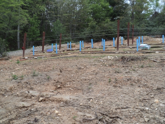 On Saturday I ran trellis wire on the Mid Wire Cordon and Top Wire Cordon trellises. My Geneva Double Curtain trellis for the Norton will have to be re-engineered since the cross arms bent when the 300 pounds of pressure required was too much for them to handle.