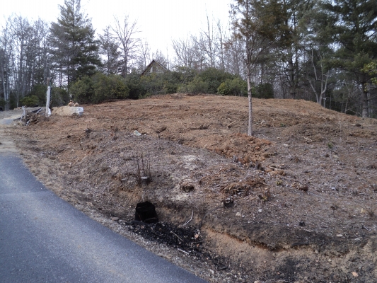 I made the executive decision to give it a shot. It was an absolutely beautiful weekend with clear blue skies and temps in the low 60’s. Our son Matt came to help and was a big asset. The skid steer loader was a blast to operate and much progress was made. The ‘thinking rock’ got moved out of the way to a much more prominent spot near the driveway gate. Lots of leveling was done and countless roots torn out. It’s not exactly a precision machine and a professional could undoubtedly have done better, but it’s not bad considering. The large Blackberry patch at the bottom of the hill was mostly obliterated and even more firewood was cut. Generally a success, but we could have used the machine another 8 hours for sure. Since the rental fee is pricey – that will have to wait and we’ll have to make due with what we got done.