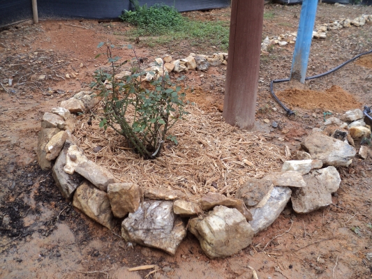 I was able to (finally) plant the rose on the end of the Norton row and the Lavender plants on the end of the Chambourcin row. See pics below. I decided against the 2nd rose on the Chardonnel row since room was an issue.