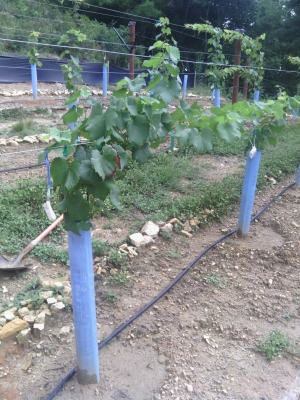 Did some close observations taking notes about each vine. Overall pretty pleased with the progress. I am going to have to study hard about pruning techniques so I don’t screw these up. The #6 vine in each row is the poorest growing, smallest vine. Maybe the hardpan runs underneath these. These 3 vines will need extra care.